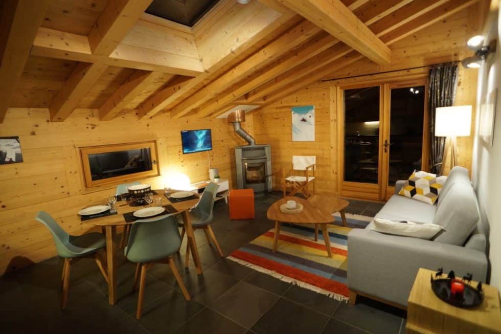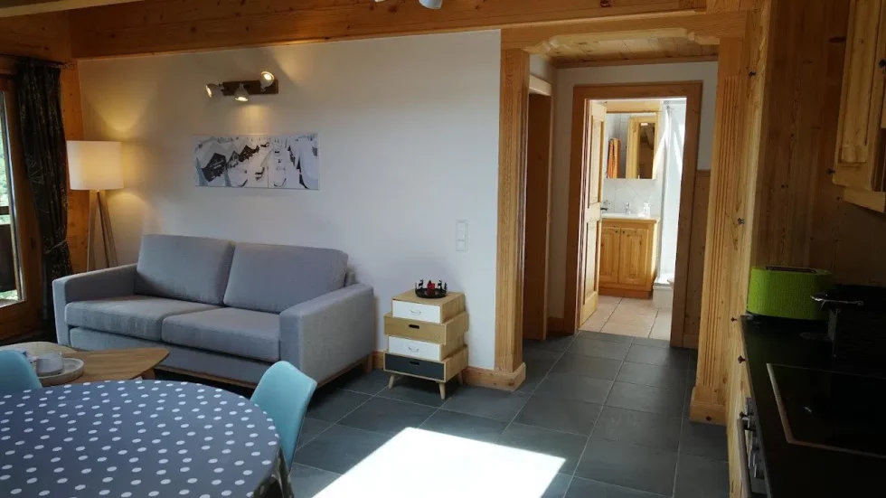 Diese wunderschöne, frisch renovierte Wohnung befindet sich im Dachgeschoss im 2. Stock von Maries Chalet und bietet eine atemberaubende Südwestaussicht auf die Berge. Sie liegt ruhig und dennoch in der Nähe von Annehmlichkeiten (nur wenige Schritte von den Thermen und öffentlichen Verkehrsmitteln entfernt).