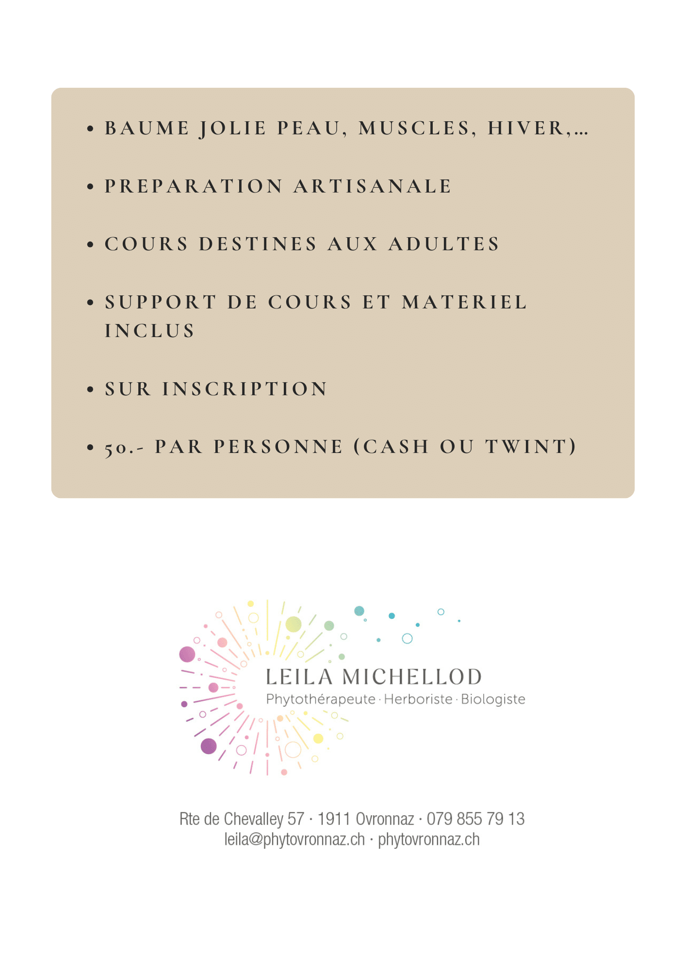 ➡️ Per E-Mail: leila@phytovronnaz.ch