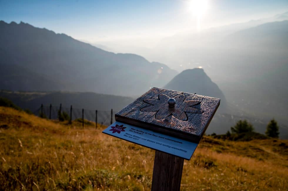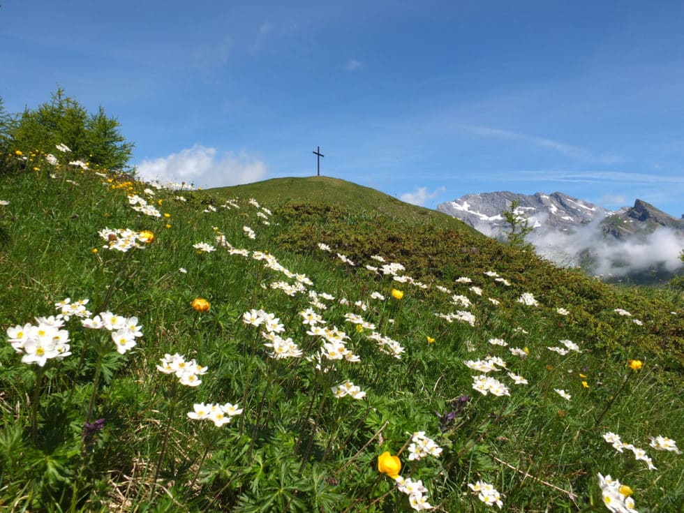 Discover the Jorasse chairlift and its breathtaking view of the majestic Muverans and the Dent Favre, offering a unique opportunity to begin your adventure toward the summit. Follow the winding path through elegant larch trees toward the Petit Pré d’Euloi. Here, the slope steepens, and a rich, varied flora accompanies you all the way to the spectacular cross of La Seya, the highest point of this hike at 2,182 meters above sea level.