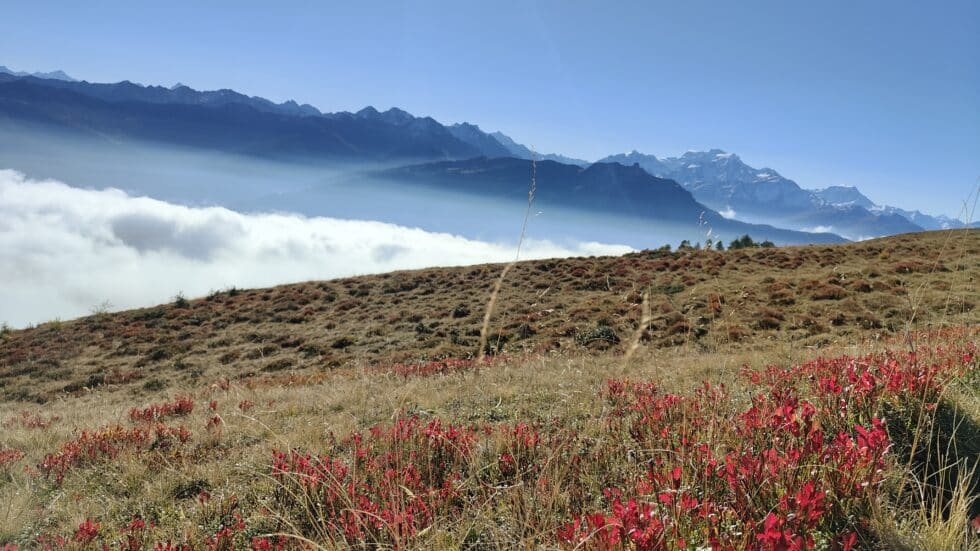 The route offers two options: the shorter option brings you back to Jorasse via the same path. For those seeking a greater challenge and a complete experience, the trail continues south along a clear ridge leading to Grand'Garde. There, you’ll be captivated by the endless view from one summit to another and the meandering course of the Rhône, perhaps trying to identify distant towns and villages. The marked trail then leads you through the alpine pastures of Quieu and Odonne, eventually bringing you back to Ovronnaz.