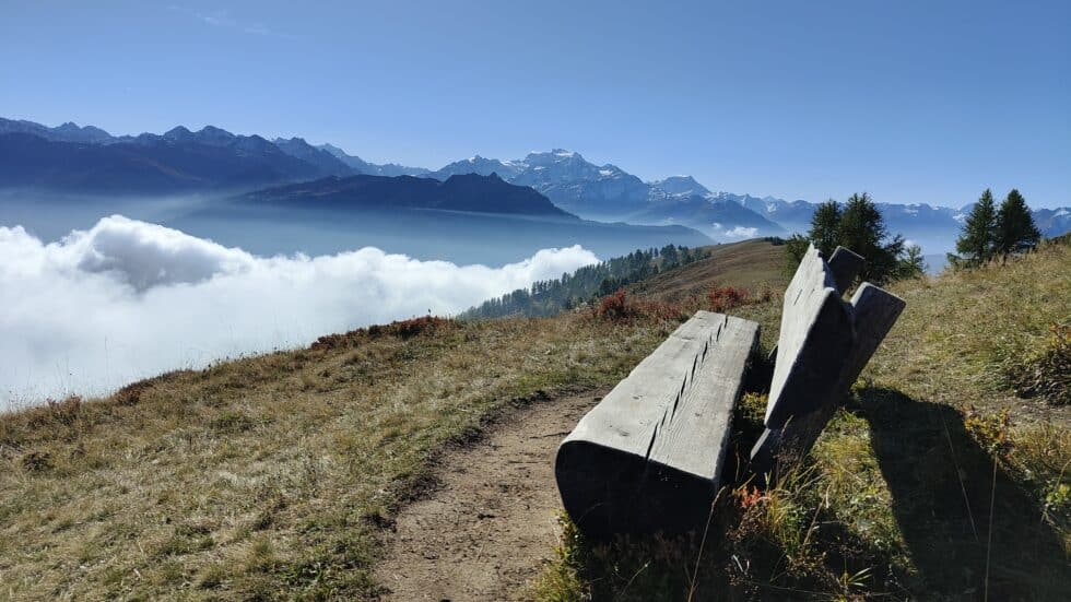 From the summit, a 360° panorama unfolds, revealing Ovronnaz at your feet, followed by Leytron and the vast Rhône plain. You can admire no fewer than thirty-five peaks soaring above 4,000 meters, from the imposing Finsteraarhorn to the shimmering Mont Blanc crowned by its snowy dome. Don't miss the chance to explore this landscape with binoculars and cameras to capture unforgettable memories.