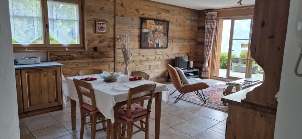 Séjour, cuisine ouverte entièrement équipée, coin repas, chambre avec lit double, séjour avec canapé-lit, salle de bain avec baignoire. Place de parc intérieure et extérieure. Armoire à skis au sous-sol. Ascenseur.