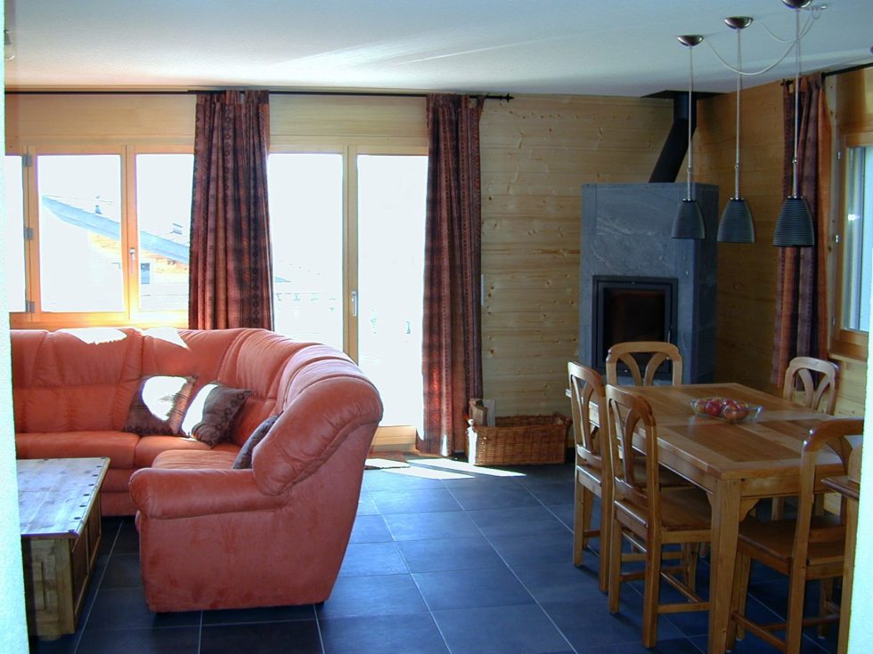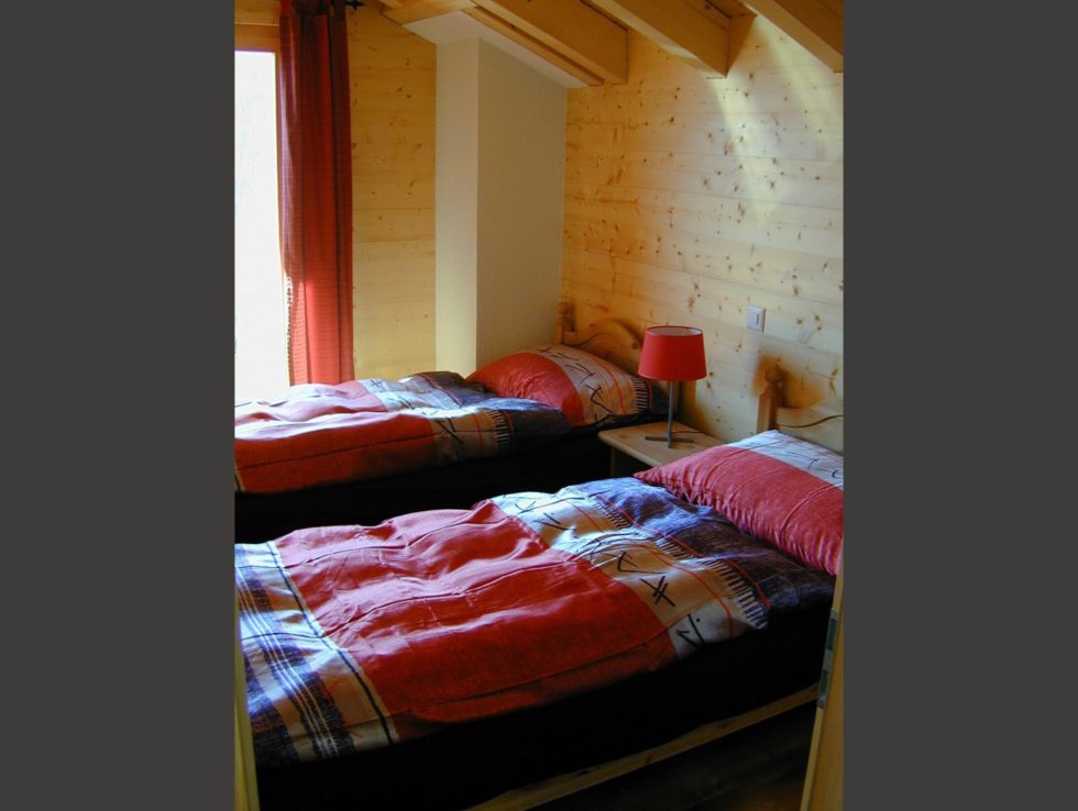 Chalet de 96 m2 sur 3 étages comprenant 3 chambres à coucher, 2 salles de bain, pierre ollaire, machines à laver la vaisselle, le linge et séchoir. Salon TV, cuisine. Terrasse de 25 m2, garage et places de parc.